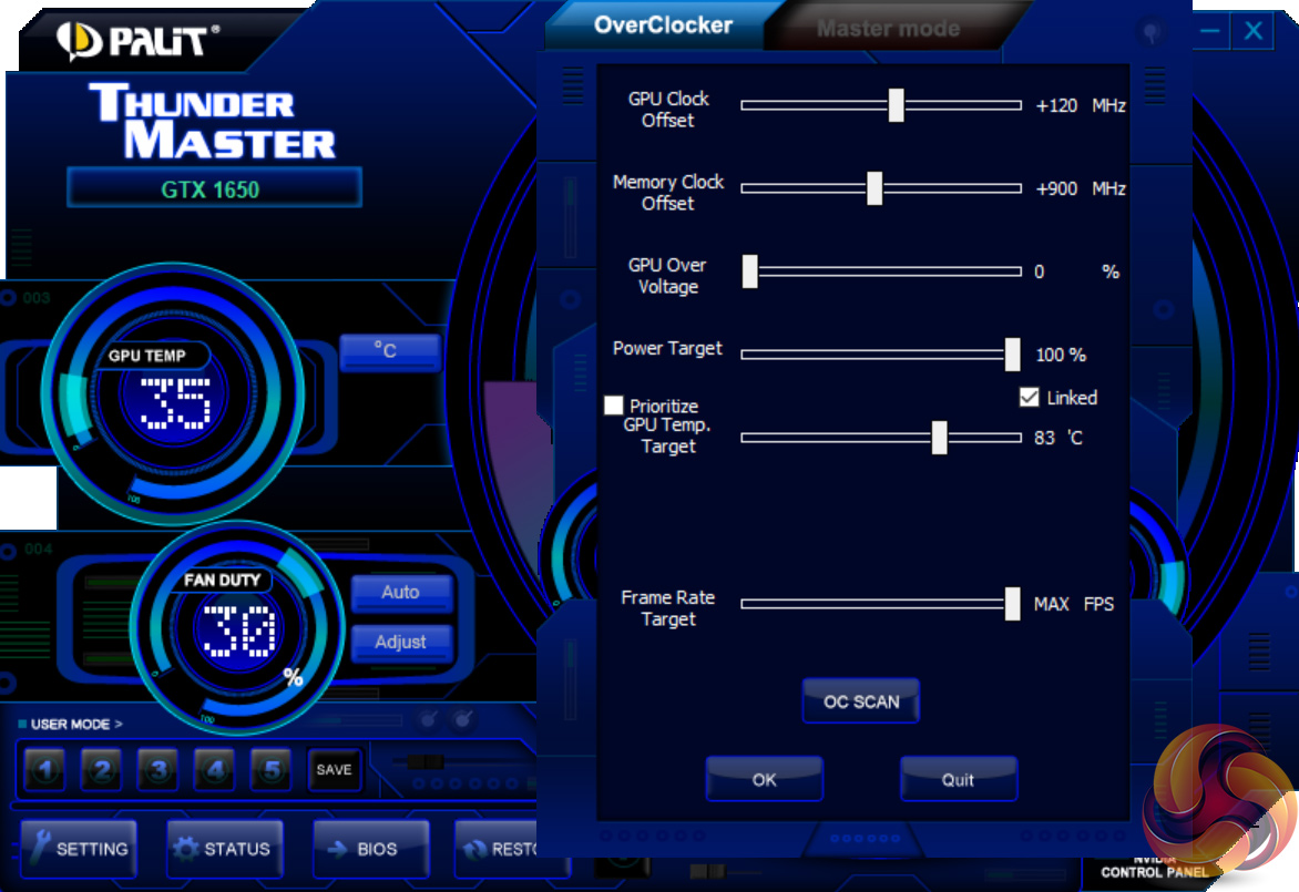 We used Palit's Thunder Master utility to overclock the graphics card. Our best result came with +120MHz to the core and +900MHz to the memory.