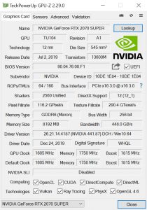Alongside that, the GPU also features 8GB of GDDR6 memory, running at 14Gbps. This is the standard speed for pretty much all the GDDR6 we have seen to-date, with the 2080 Super a notable exception as its memory runs at 15.5Gbps.