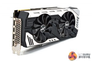 As for the fans, these use Palit's TurboFan Blade 2.0 design, with each measuring in at 100mm which is good to see. While there is a fan-stop mode present with the 2070 Super JS, it is only an option using the card's secondary BIOS, so out of the box the fans do keep running even when the card isn't under load.