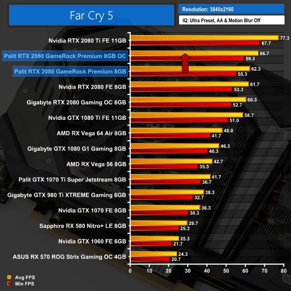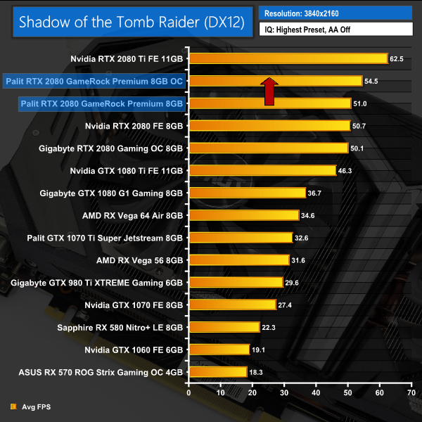 That overclock netted us an extra 5% graphics score in Fire Strike, while we saw frame rates rise between 3-4FPS when playing Far Cry 5 and Shadow of the Tomb Raider at 4K.