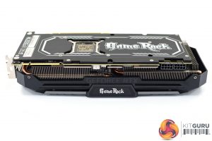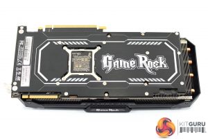 In terms of its backplate, the GameRock Premium's backplate is made of brushed metal, with a cut-out behind the GPU core. Next to that, the ‘GameRock' logo is printed in big, white letters – and the font is very much reminiscent of Guitar Hero. We asked our readers about this on Facebook and we had very mixed responses – it's not for us to say whether you like it or not, but there is no doubt the design is polarising.