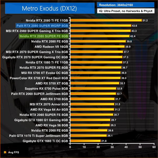 Metro Exodus picks up exactly where Ghost Recon: Wildlands left off, with 3% gains for the WGRP over the Founders Edition across every resolution tested.