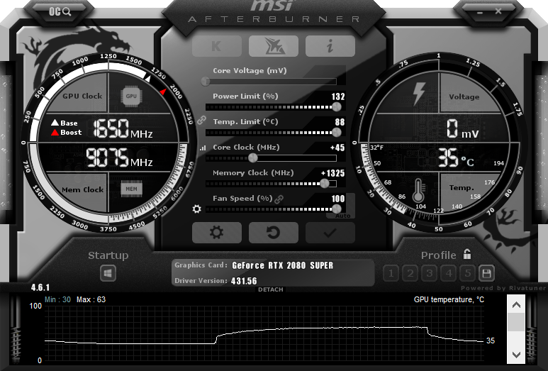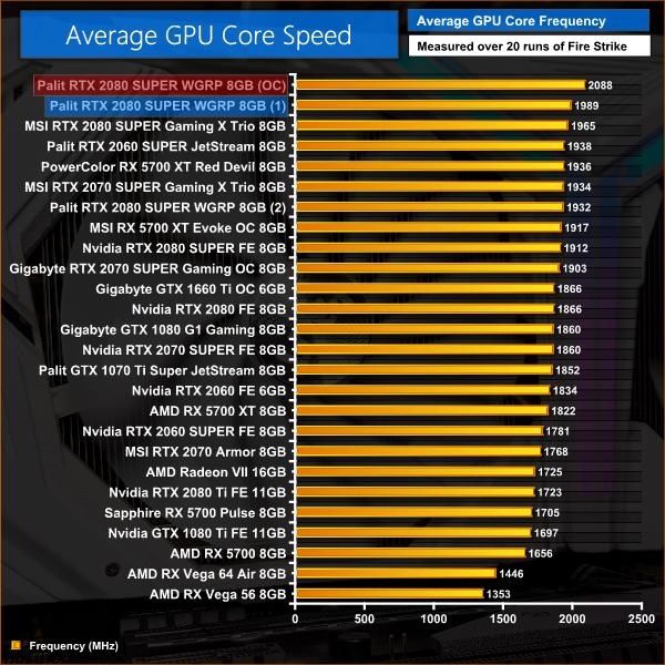 Despite the core frequency only increasing by 45MHz in Afterburner, coupled with raising the power and temperature limits we actually saw clock speed increase by almost 100MHz under load – not bad at all!