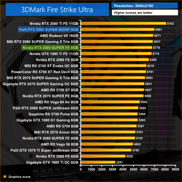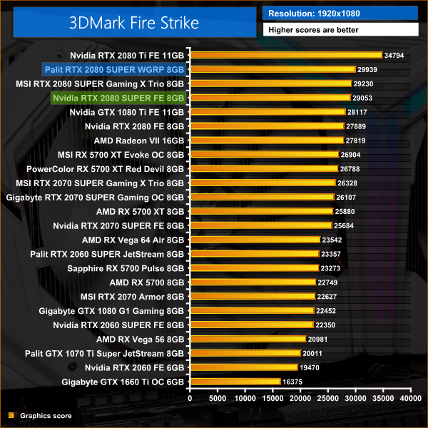 Initial impressions are positive for the 2080 SUPER WGRP – its 3DMark benchmarks are consistently above both the Founders Edition and MSI Gaming X Trio card, only bested by the RTX 2080 Ti.