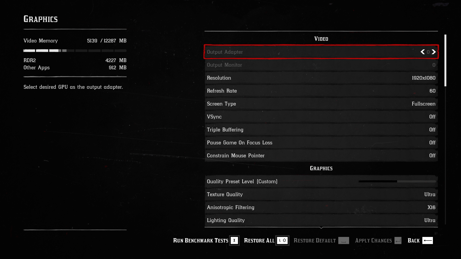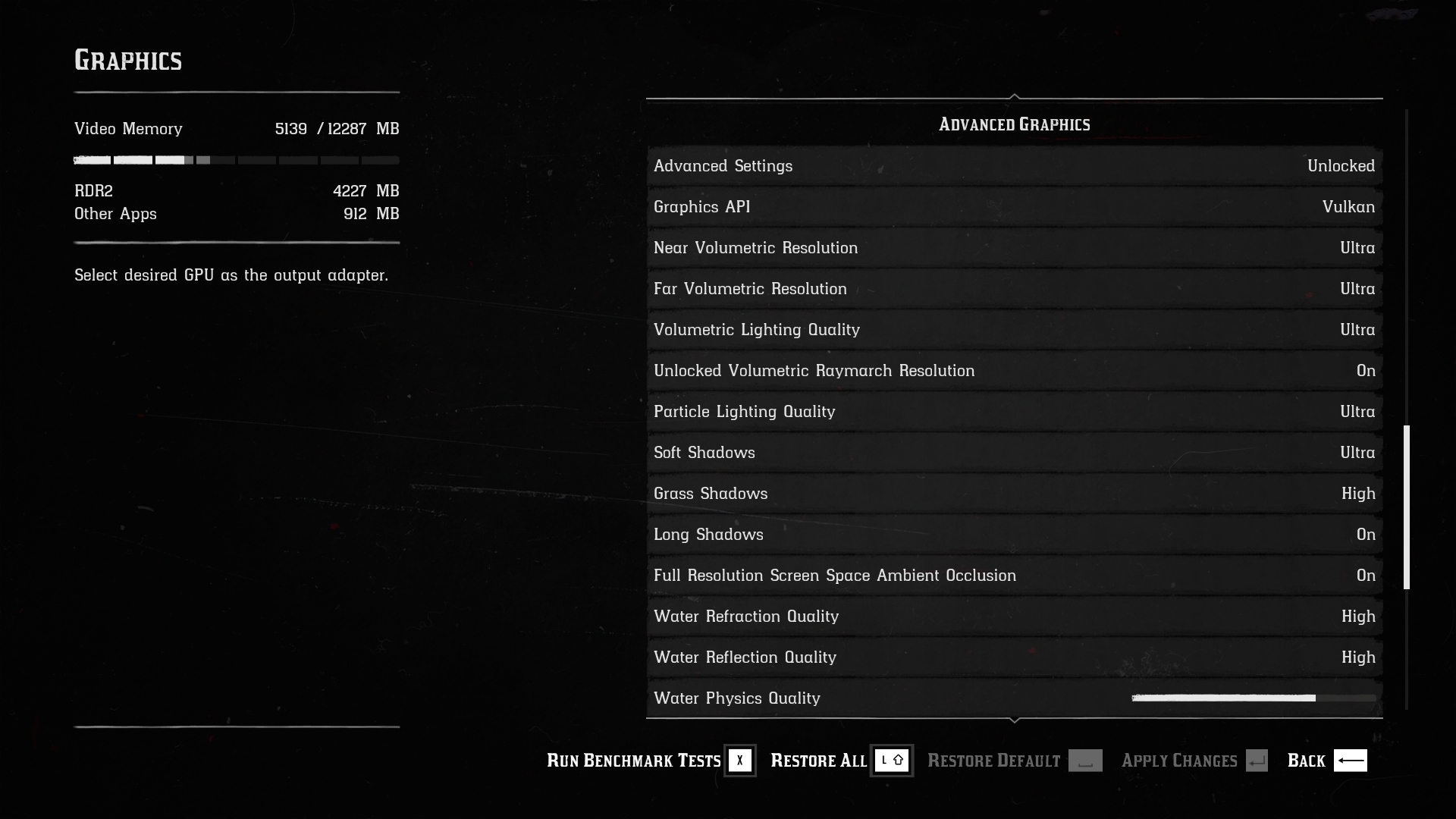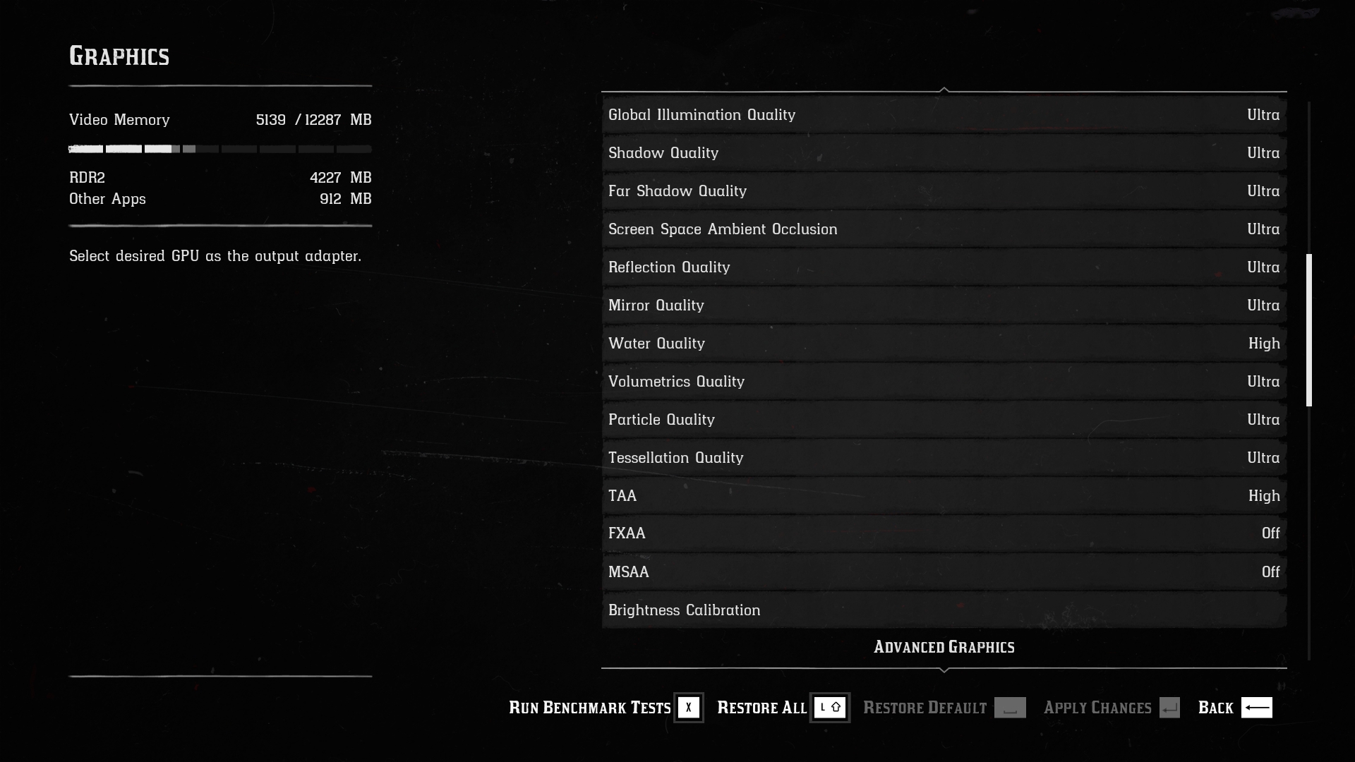 Engine: Rockstar Advance Game Engine (RAGE). We test by manually selecting Ultra settings (or High where Ultra is not available), TAA, Vulkan API.