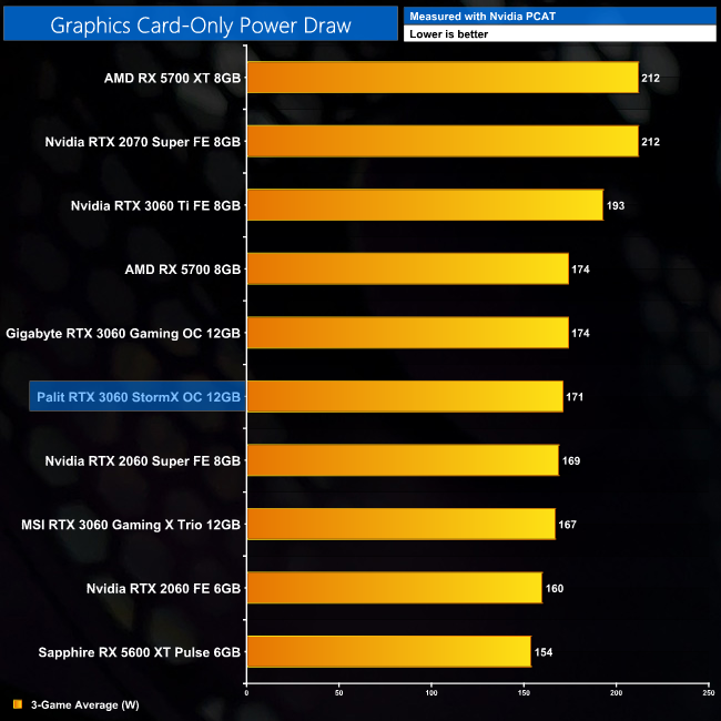 We also use Nvidia PCAT to measure power draw of the graphics card only, with readings from both the PCIe slot and the PCIe power cables combined into a single figure. This provides us with significantly more accurate data to work with as it is measuring only the GPU power, and not total system power which is a fundamentally imprecise measurement.