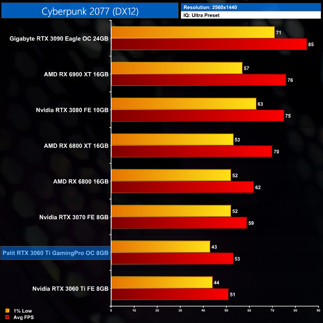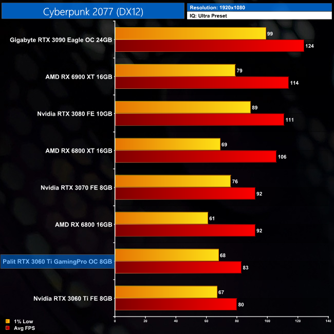 While we don't yet have full comparison data for Cyberpunk 2077, we can see the GamingPro OC comes in 4% faster than the Founders Edition at 1440p. Again, bear in mind this is only a real-world difference of two frames.