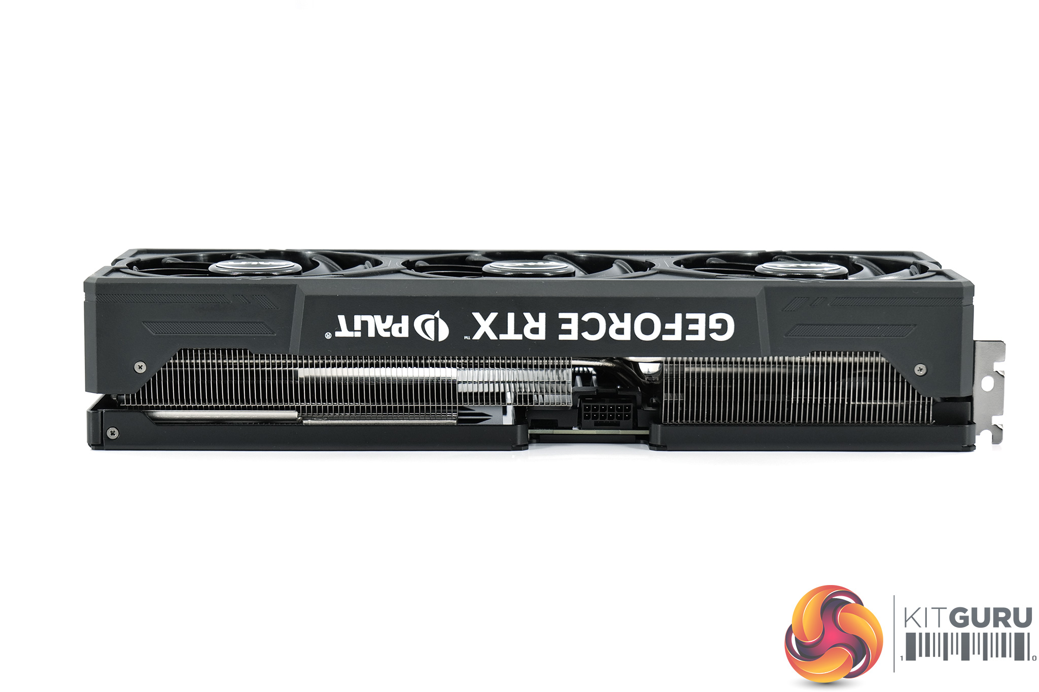 The front side of the card is home to the GeForce RTX and Palit logos, though do note these are only printed in white text and do not illuminate once turned on.