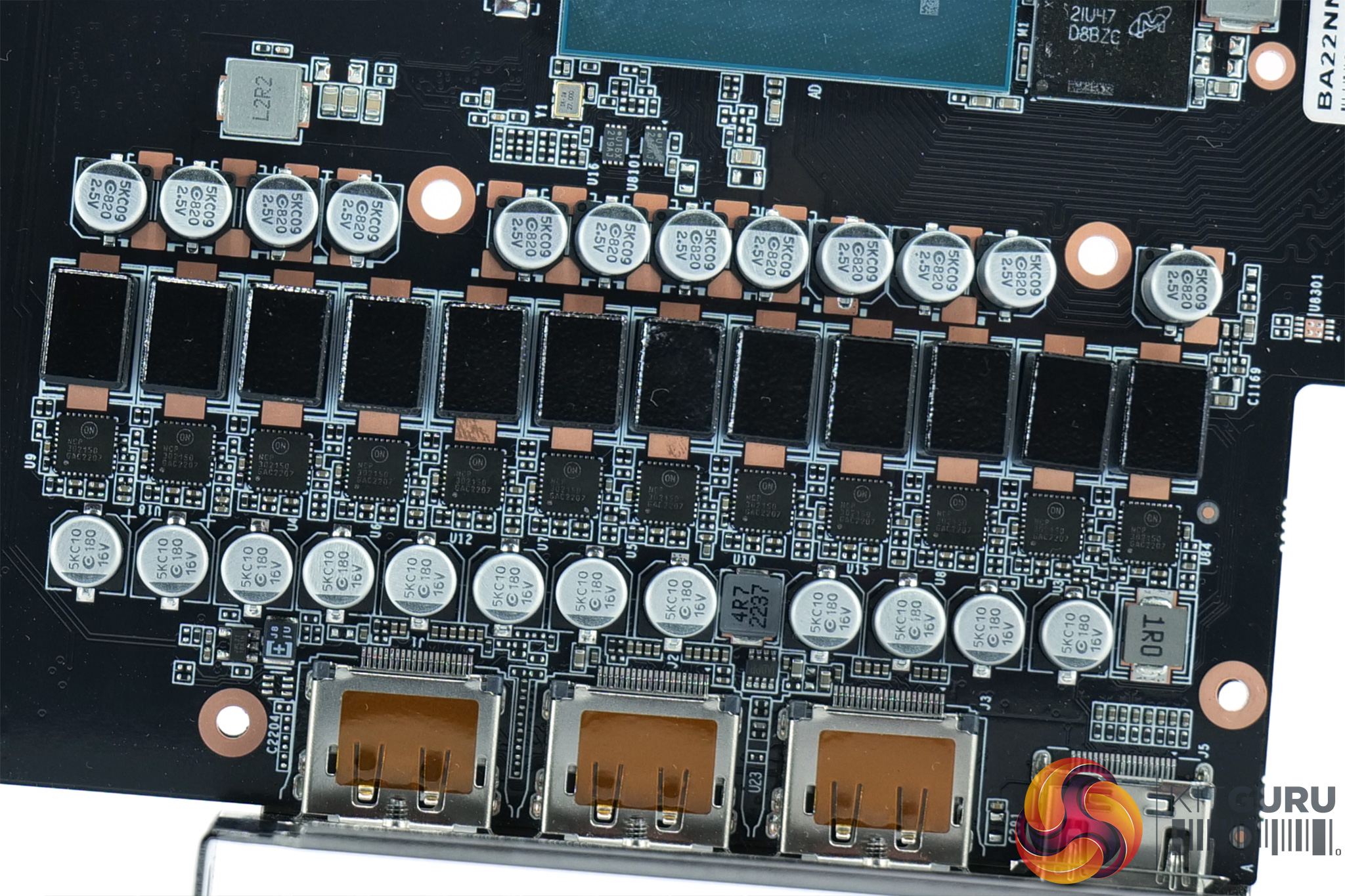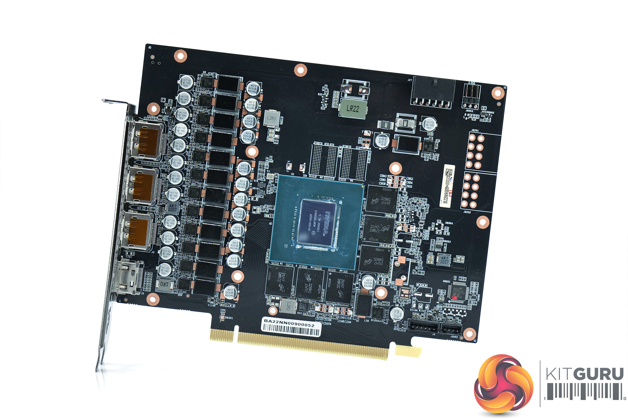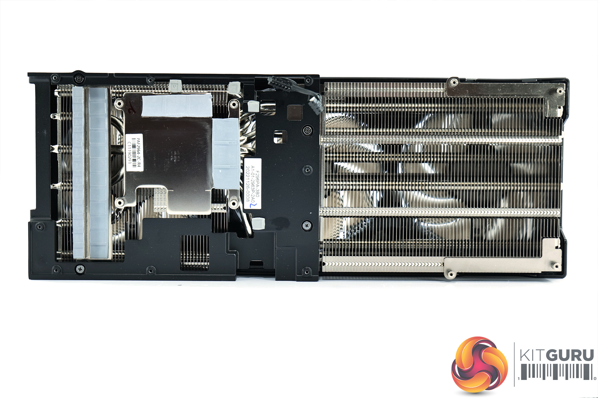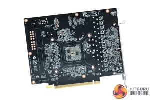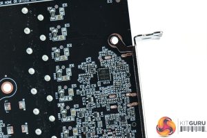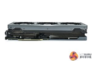 Flipping the card over we get a look at the full-length metal backplate, with a number of cutouts to allow air to pass straight through the heatsink.
