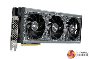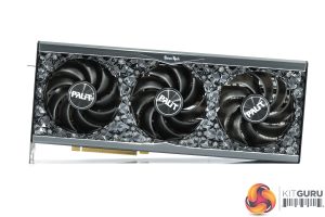 We also get a look at the three 90mm fans, using Palit's ‘gale hunter' design, with a new ‘winglet fantail' that Palit claims helps to increase airflow concentration.