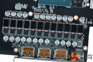 We can also see the dual-BIOS switch positioned just by the I/O bracket. The Performance BIOS is the default option, and that offers a slightly higher fan speed, increased clock speed and an adjustable power limit compared to the Silent BIOS, but we do test both modes later in this review.