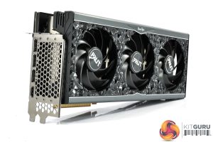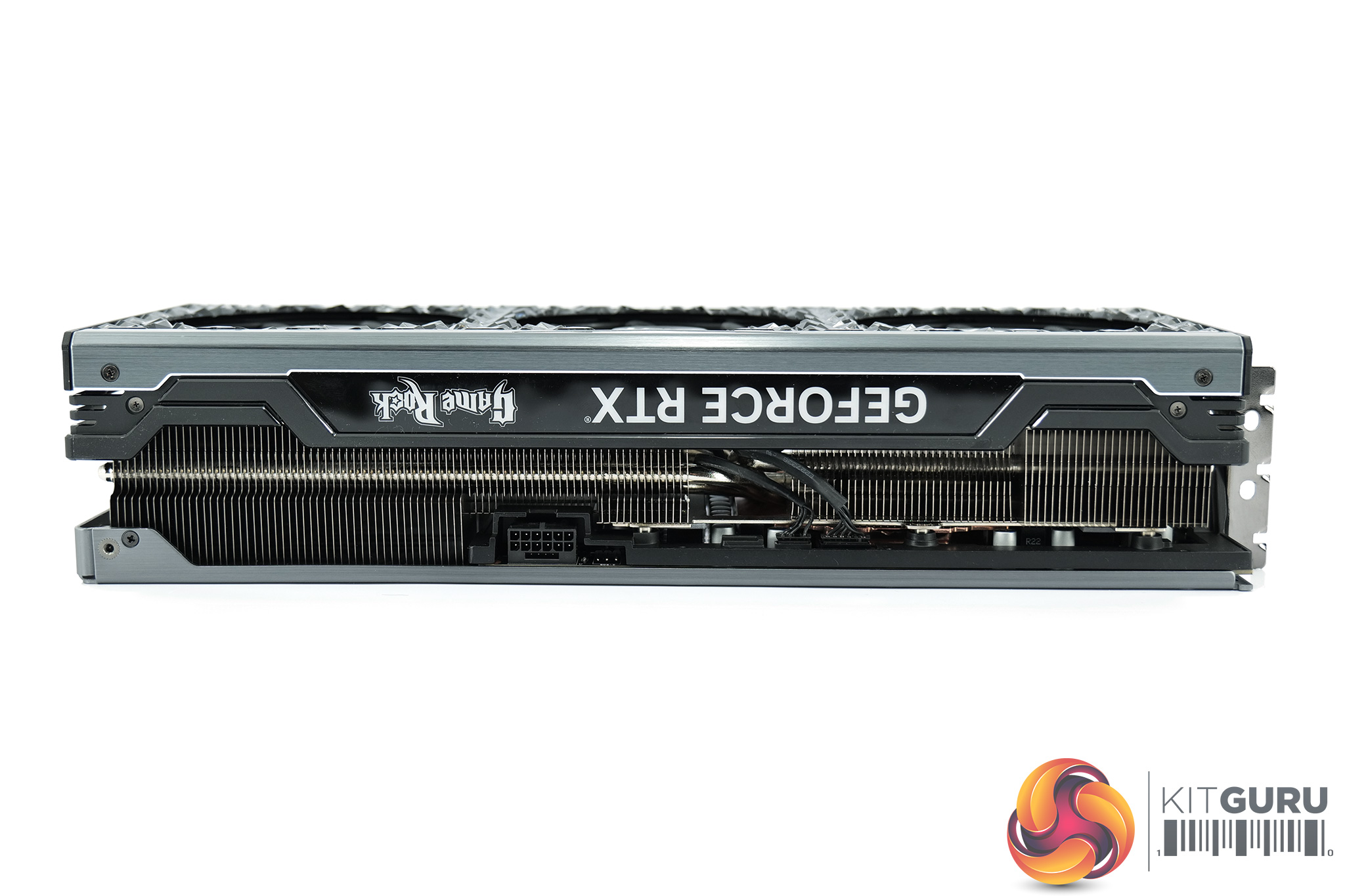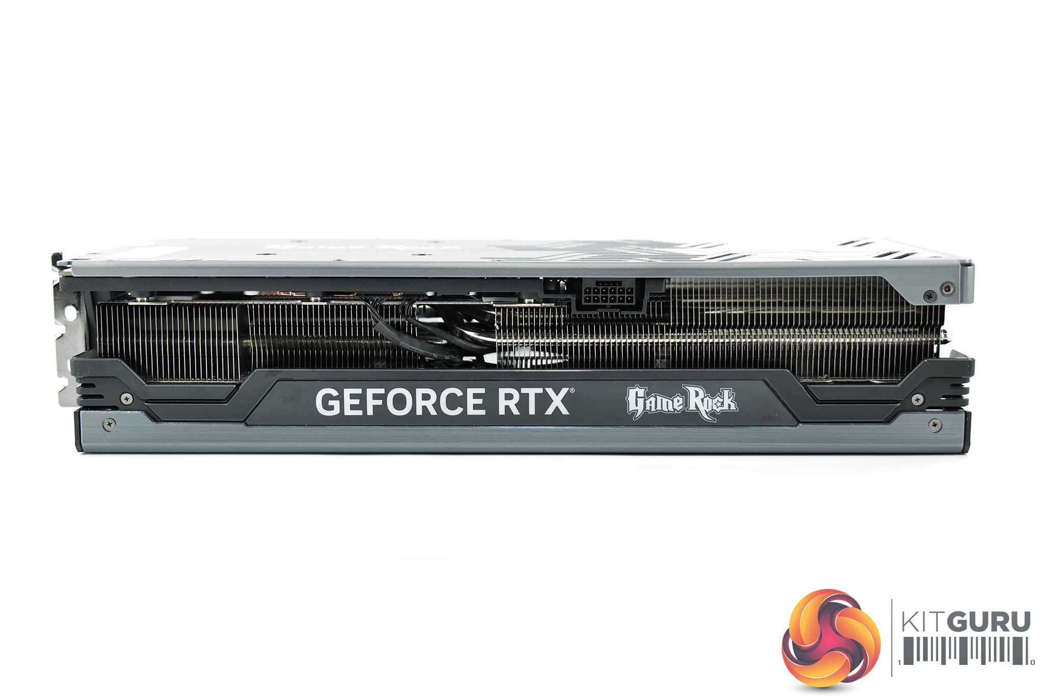 We find a black plastic shroud, though there's two large brushed metal plates that definitely add a premium feel in the hand. Meanwhile, the plastic RGB diffusers that fill the space around the three fans – which Palit call the ‘crystals' – are now a much darker shade as well – until they are turned on, of course!
