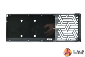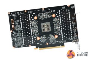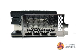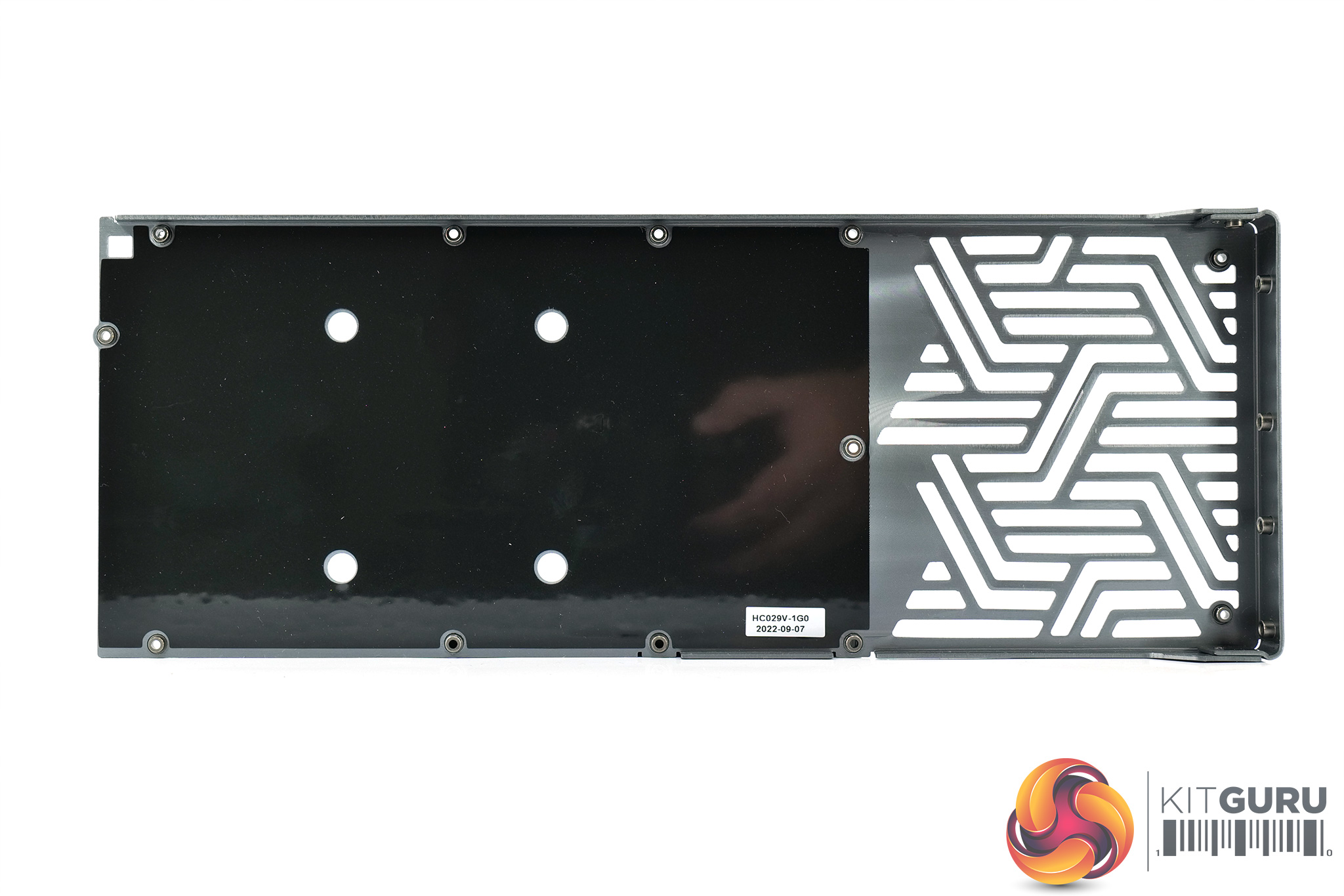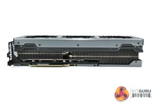 Flipping the card over we get a look at the full-length metal backplate, with a number of cutouts to allow air to pass straight through the heatsink.