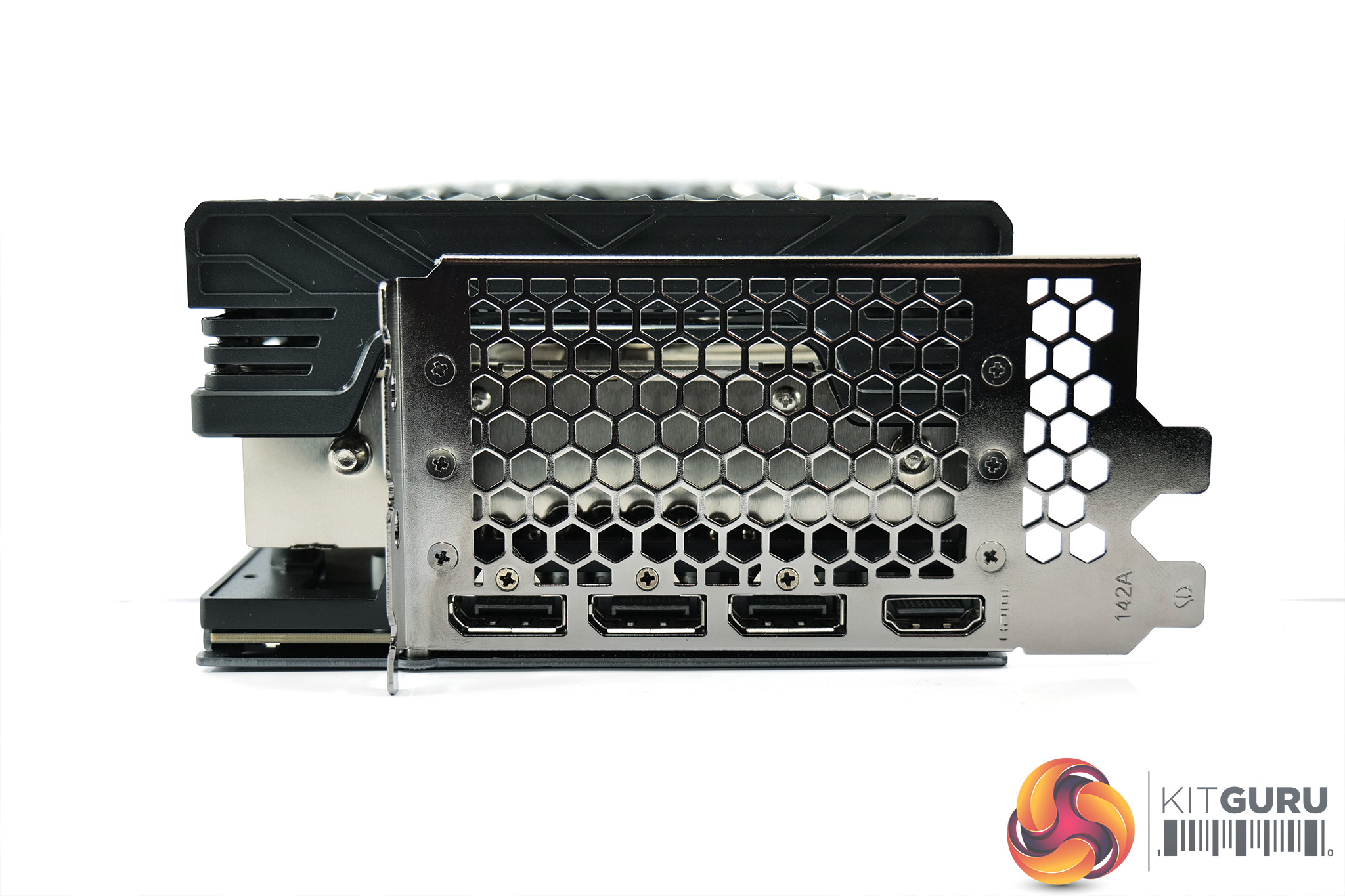 We can also note the 12VHPWR power connector, while display outputs are standard, with 3x DisplayPort 1.4 and 1x HDMI 2.1.