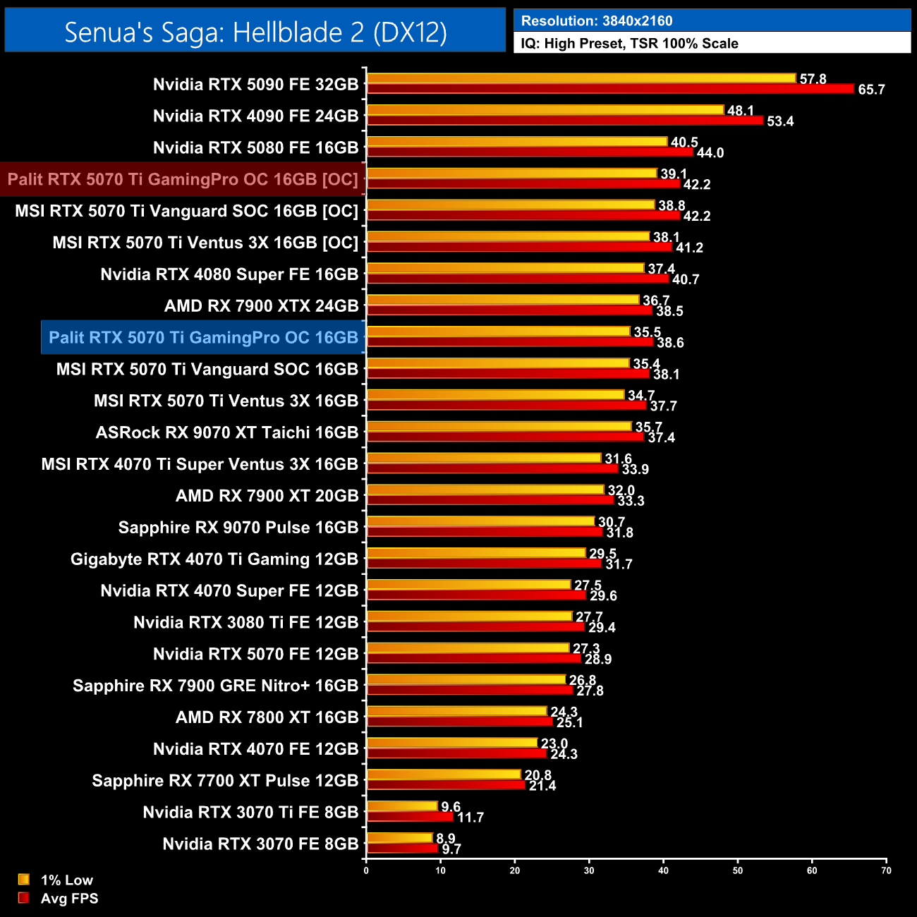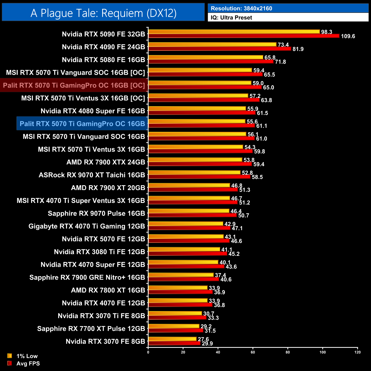 This overclock saw performance gains vary a fair bit from game to game, with just a 6% boost to A Plague Tale: Requiem, but Cyberpunk saw a 12% fps increase, while we also saw a 9% improvement in Senua's Saga: Hellblade 2.