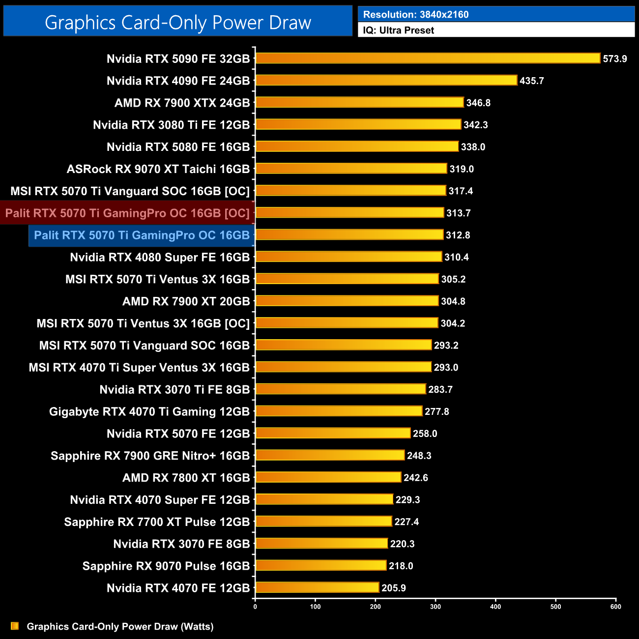 Considering Palit does not allow any increase to the power limit slider, real-world power draw remained unchanged with the overclock applied.