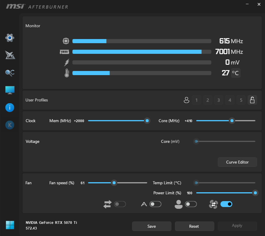 For our manual overclocking tests, we used MSI Afterburner. Our best results are as below.