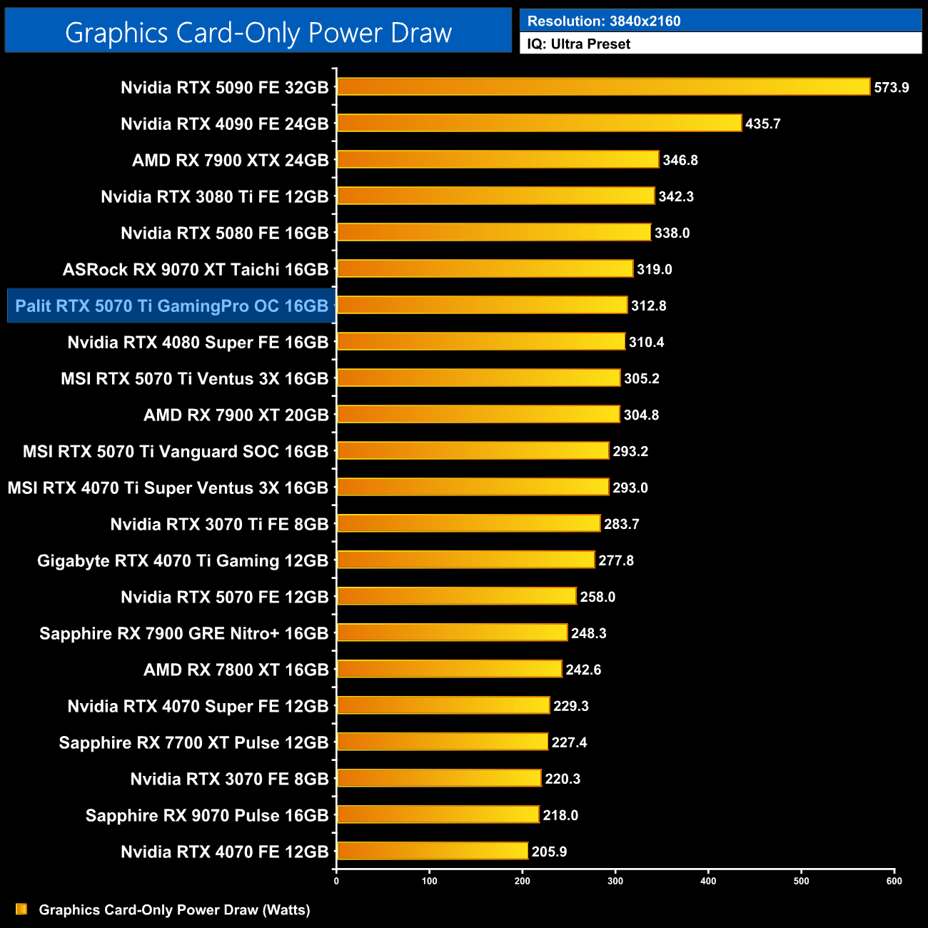 We use Nvidia PCAT to measure power draw of the graphics card only, with readings from both the PCIe slot and the PCIe power cables combined into a single figure. We use A Plague Tale: Requiem (4K/2160p) for this testing.