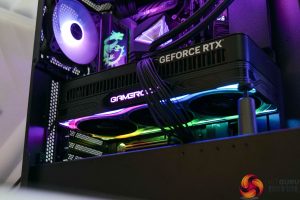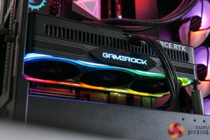 Then for the RGB lighting, you get a full 360 effect around the shroud itself, while the GameRock logo on the side also lights up. Palit's ThunderMaster utility can be used to control the lighting, or you can connect the card to your motherboard via the ARGB header if you wish.