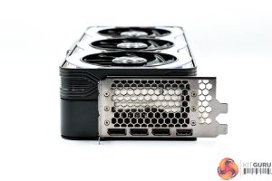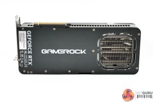 As for the backplate, this is a full-length piece of brushed metal, but with a large flow through area to help with heat dissipation. It's certainly better than nothing, but again I can't help but feel it doesn't match the vibrancy of the shroud design – for me, the silver backplate on the 40 series GameRock cards would have worked much better here.