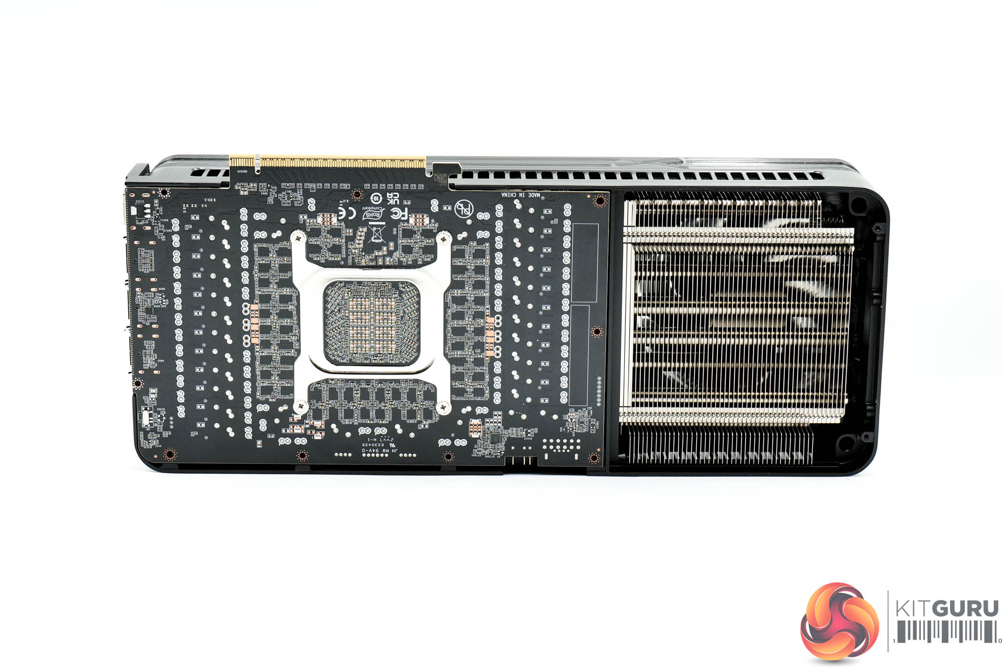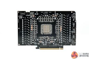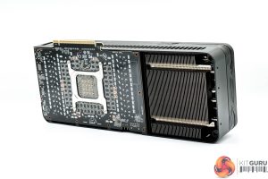 The first step for disassembling the card is to remove the backplate, revealing the back of the PCB. You can also see just how much ‘flow through' space Palit has built into the card – by my measurements, the PCB extends only about 20cm, leaving nearly 13cm dedicated to unobstructed airflow.