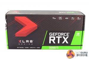 The PNY RTX 2080 Ti XLR8 Gaming ships in a fairly simple box, with only the XLR8 and GeForce branding on the front – there's no image of the card itself here.