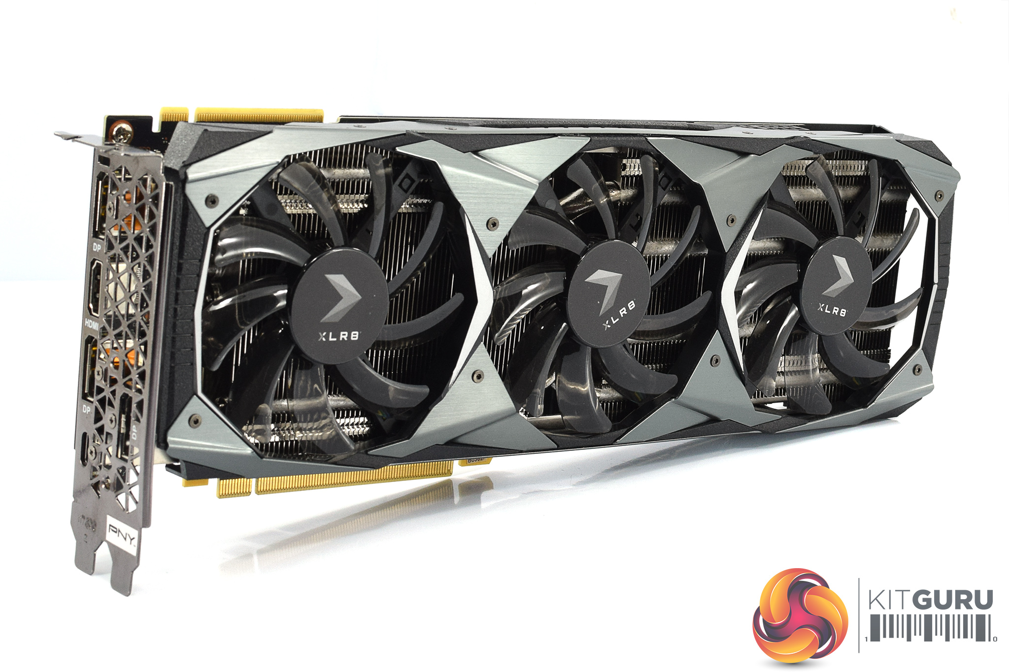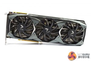The card itself is what we are here for, though, and we can immediately see the monochrome yet fairly aggressive styling PNY has gone for with this card. The main body of the shroud is matte black plastic, yet there are a number of angular metal plates screwed onto of the plastic which give it that somewhat aggressive look. The card doesn't feel as premium as the Founders Edition, but it is still fairly weighty and doesn't feel cheap in the hand.