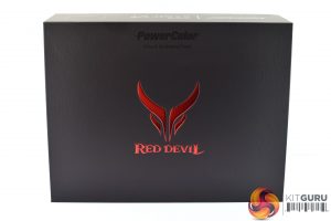 I received the PowerColor RX 5700 XT Red Devil in the form of the limited edition bundle – this has different packaging and a few added extras to the regular retail version, but the graphics card itself is the same. The limited edition box is jet black, with just the Red Devil logo smack-bang in the middle.