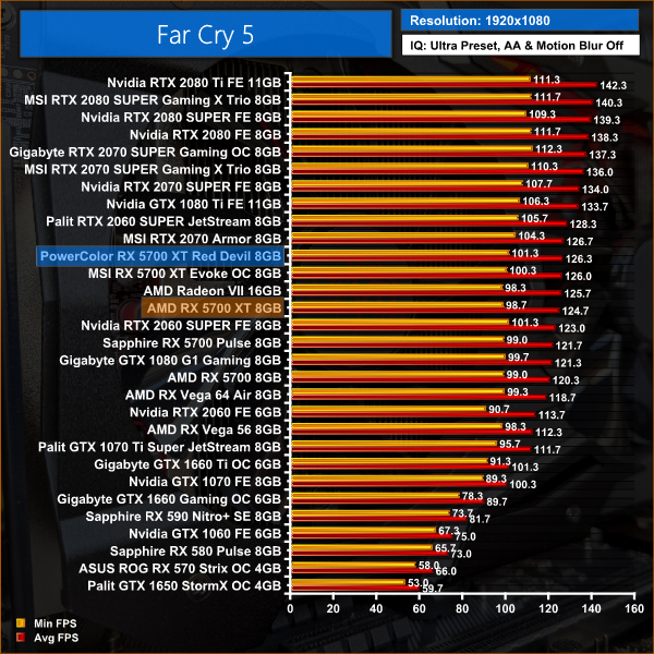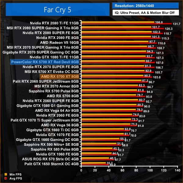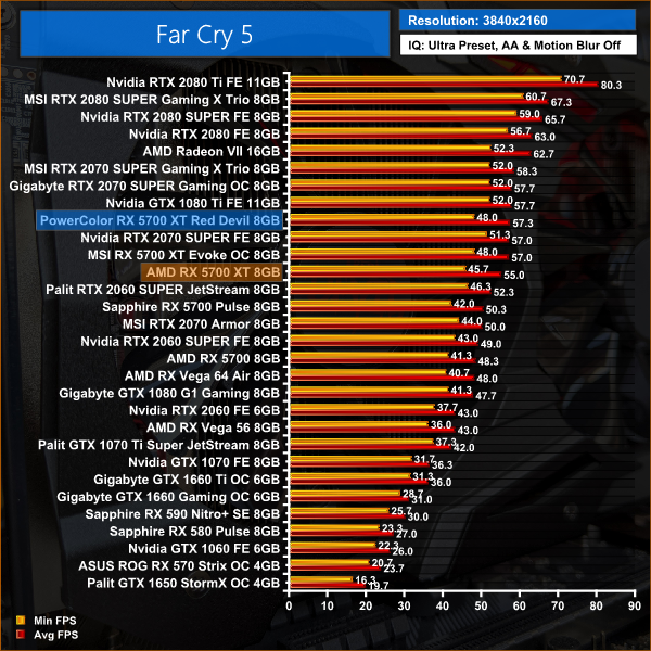 Far Cry 5 mirrors Deus Ex perfectly – there's just 1% between the Red Devil and the reference card at 1080p, but this grows to 4% at 1440p and 4K.