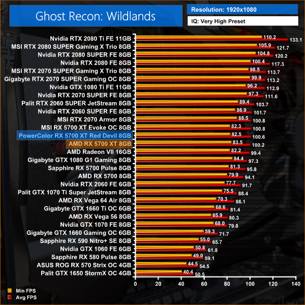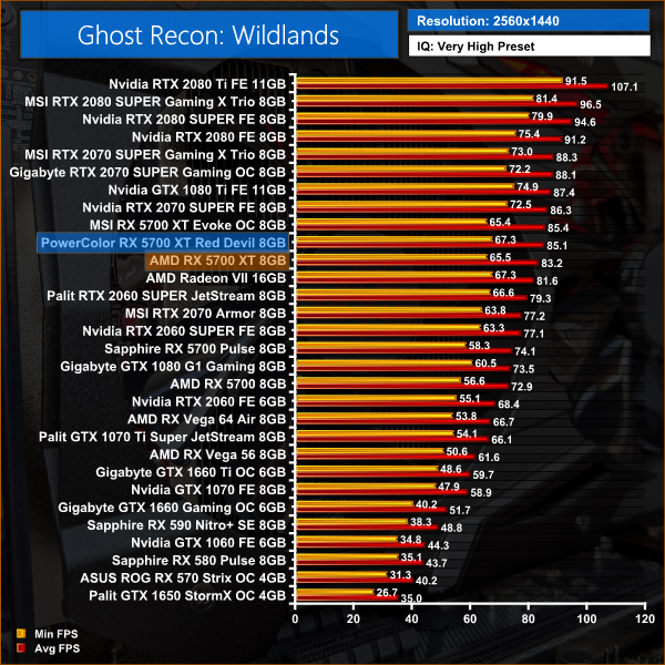 Things are again very close in Ghost Recon: Wildlands, with just 2.2FPS separating our three 5700 XT cards at 1440p.