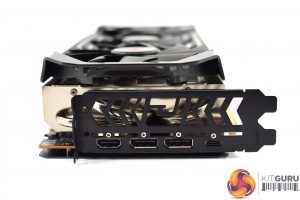 On the front side of the card, there's a couple of points worth noting. The first is the BIOS switch, and by default the card uses the OC BIOS, with a higher power target and clock speed compared to reference. There is also a Silent BIOS which drops the power target, clocks and fan speed. We test both of these modes later in the review.