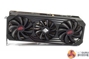 Speaking of the fans, the two outer ones measure 100mm across, whereas the central fan measures 90mm. For comparison, the 5700 XT model had 3x 90mm fans.