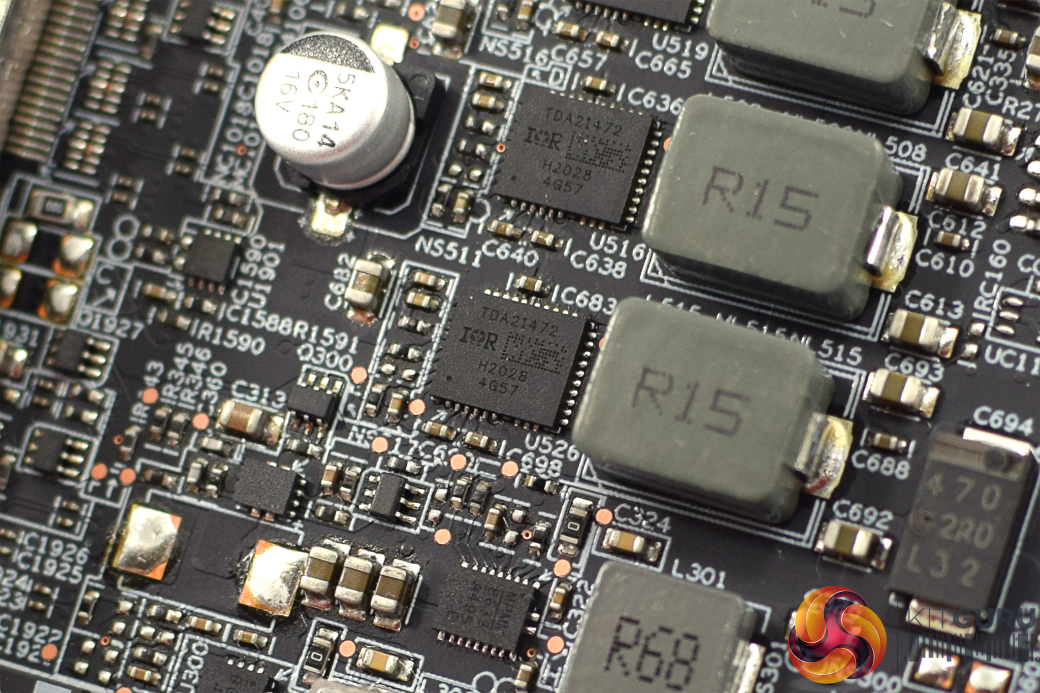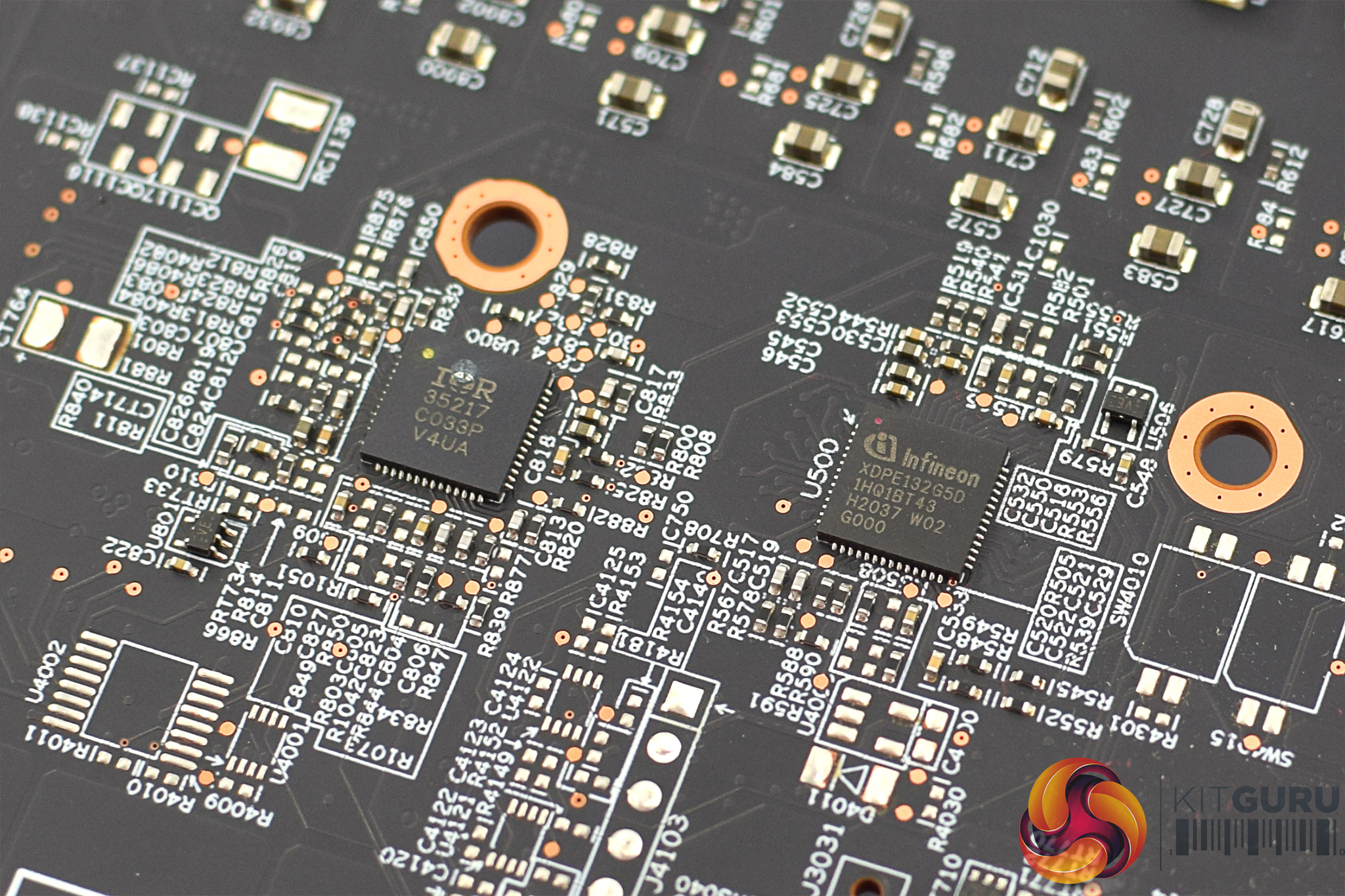 PowerColor is using International Rectifier TDA21472 MOSFETs, rated at 70A. The VRM controller is a 16-phase Infineon XDPE132G5D. For the memory, PowerColor is using a 3-phase solution, with an International Rectifier IR35217 controller. The memory modules themselves are supplied by Samsung, rated at 16Gbps.