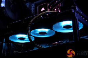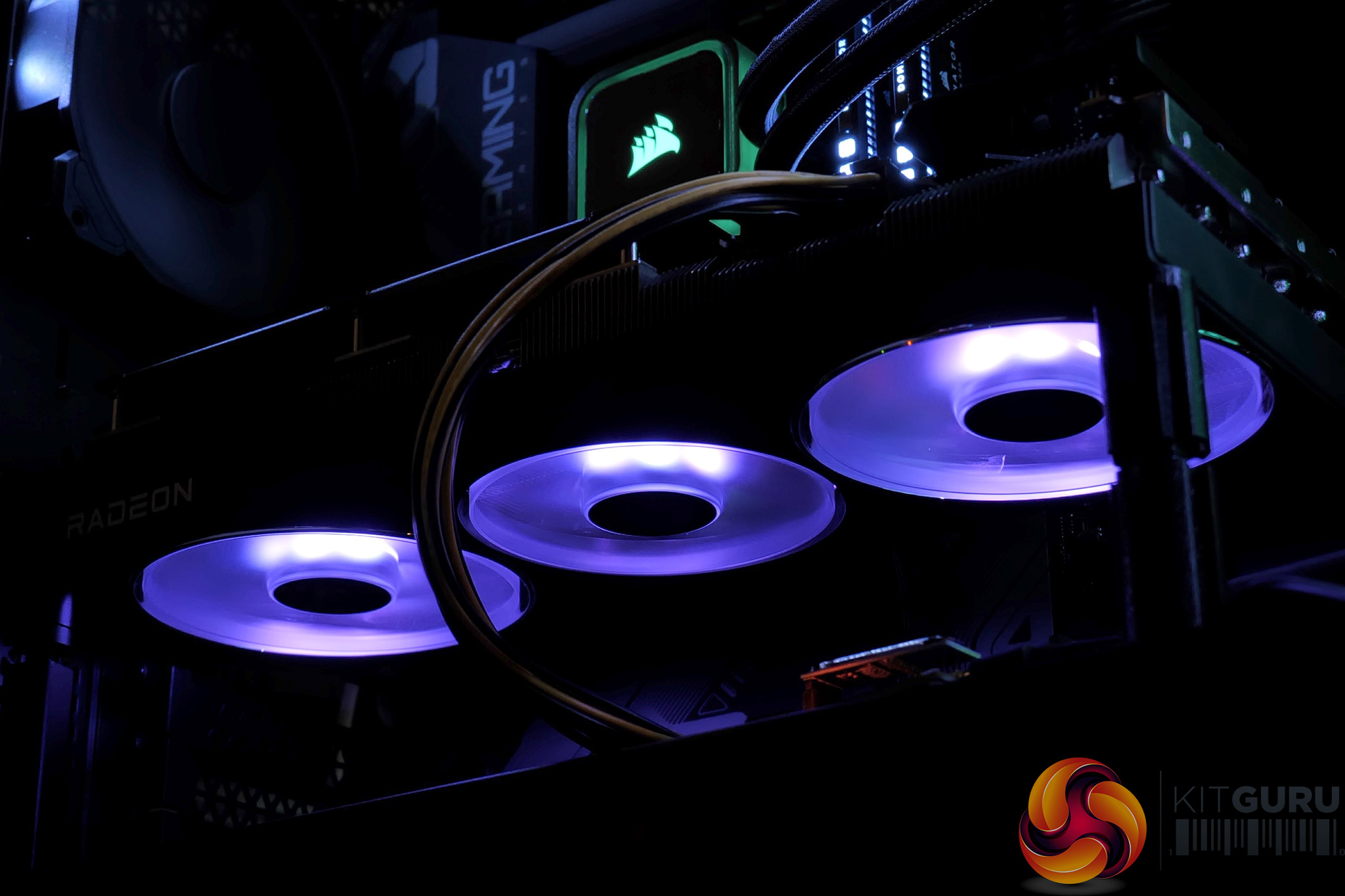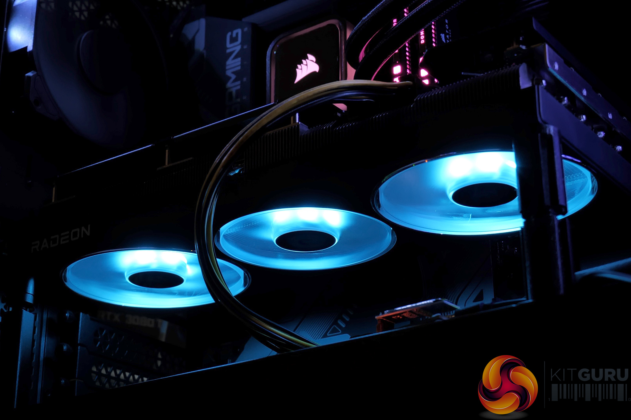 The three fans grab your attention, too, with their translucent fan blades, designed to amplify the LED lighting (as shown below). Interestingly, the central fan is smaller than the outer two at 90mm, while the others measure 100mm across. The central fan also spins in reverse, a now-common feature designed to reduce airflow turbulence.