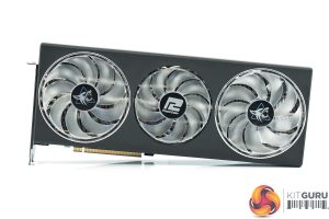 There's another switch next to the power inputs, and this controls the LED lighting. You can either set it to Ice Blue, Amethyst Purple or completely off. While I've nothing against the two colours shown, I do find this approach slightly odd – I can only assume PowerColor wanted to avoid RGB lighting to keep the cost down, or help segment the Hellhound and Red Devil series slightly. It's not the end of the world but I think the option for RGB lighting would work very nicely with these translucent fan blades.
