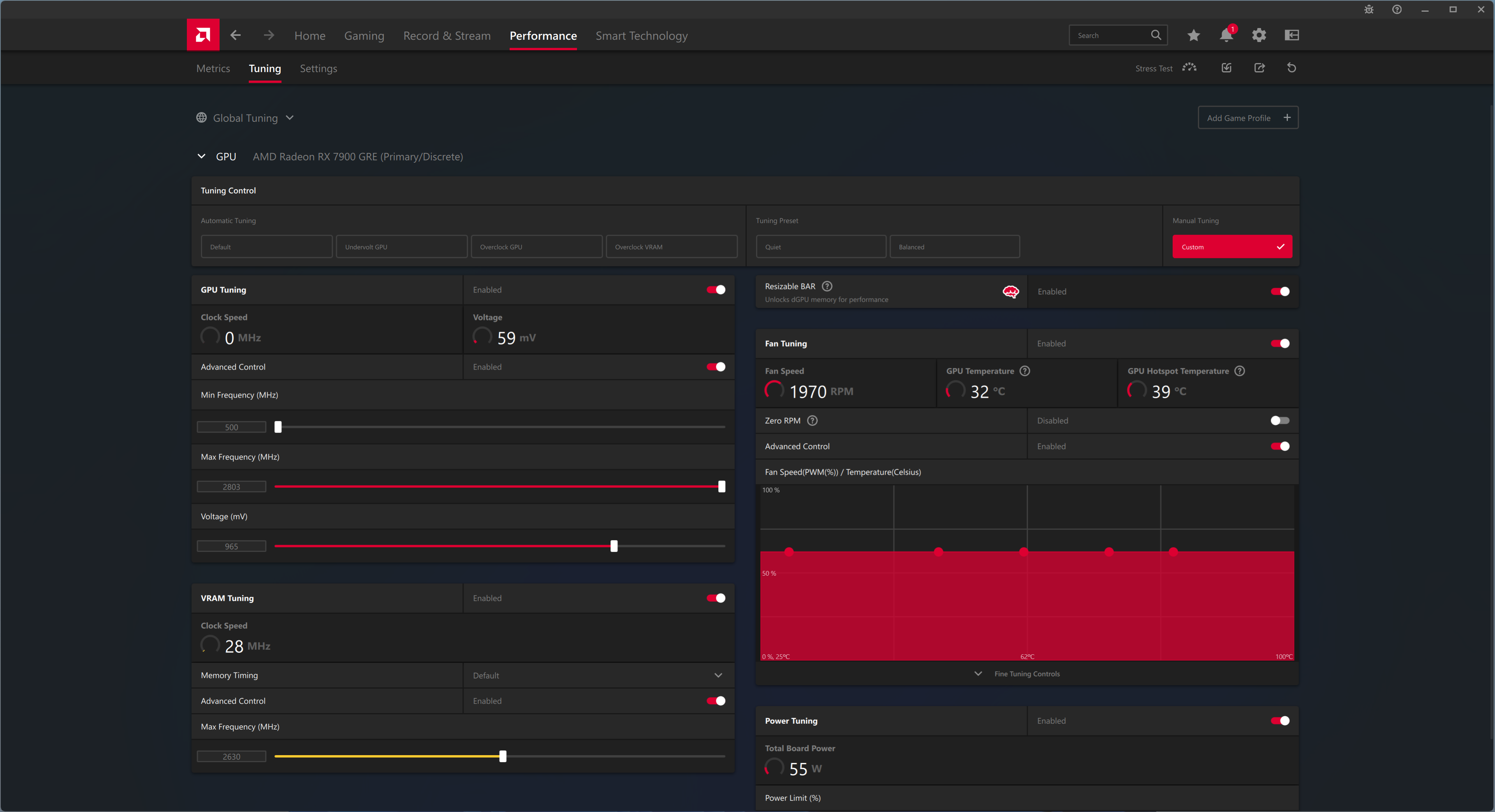 For our manual overclocking tests, we used AMD's Adrenalin software. Our best results are as below.