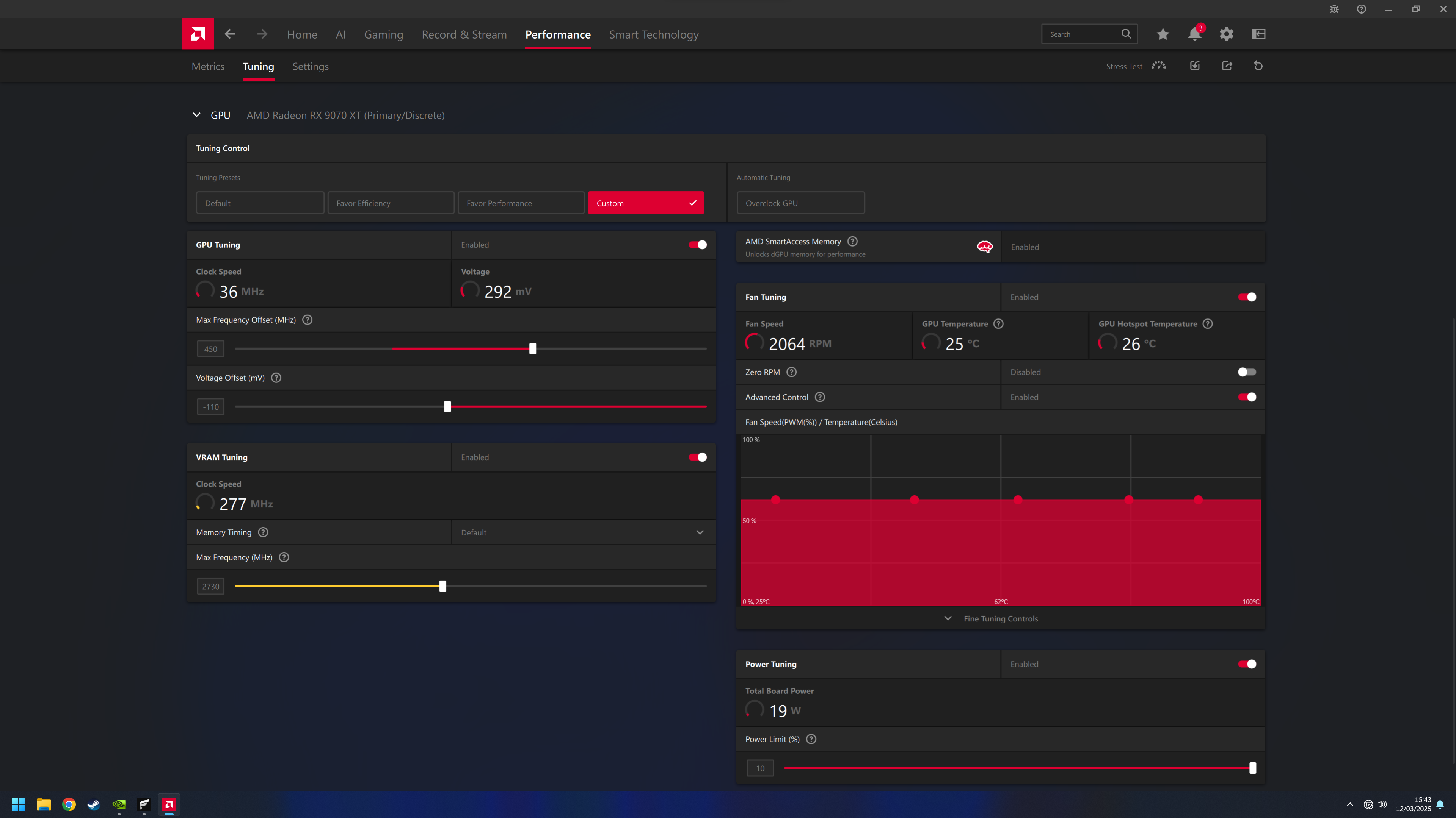 Overclocking the RX 9070 XT is very similar to the RX 7000 series, in the sense that the overclocking bit itself doesn't really matter, but it all depends on how far you can lower voltage. For the Red Devil, I maximised the power limit at +10%, added 450MHz to the GPU clock, set the memory clock to a maximum of 2730MHz, and managed to set a -110mV offset.