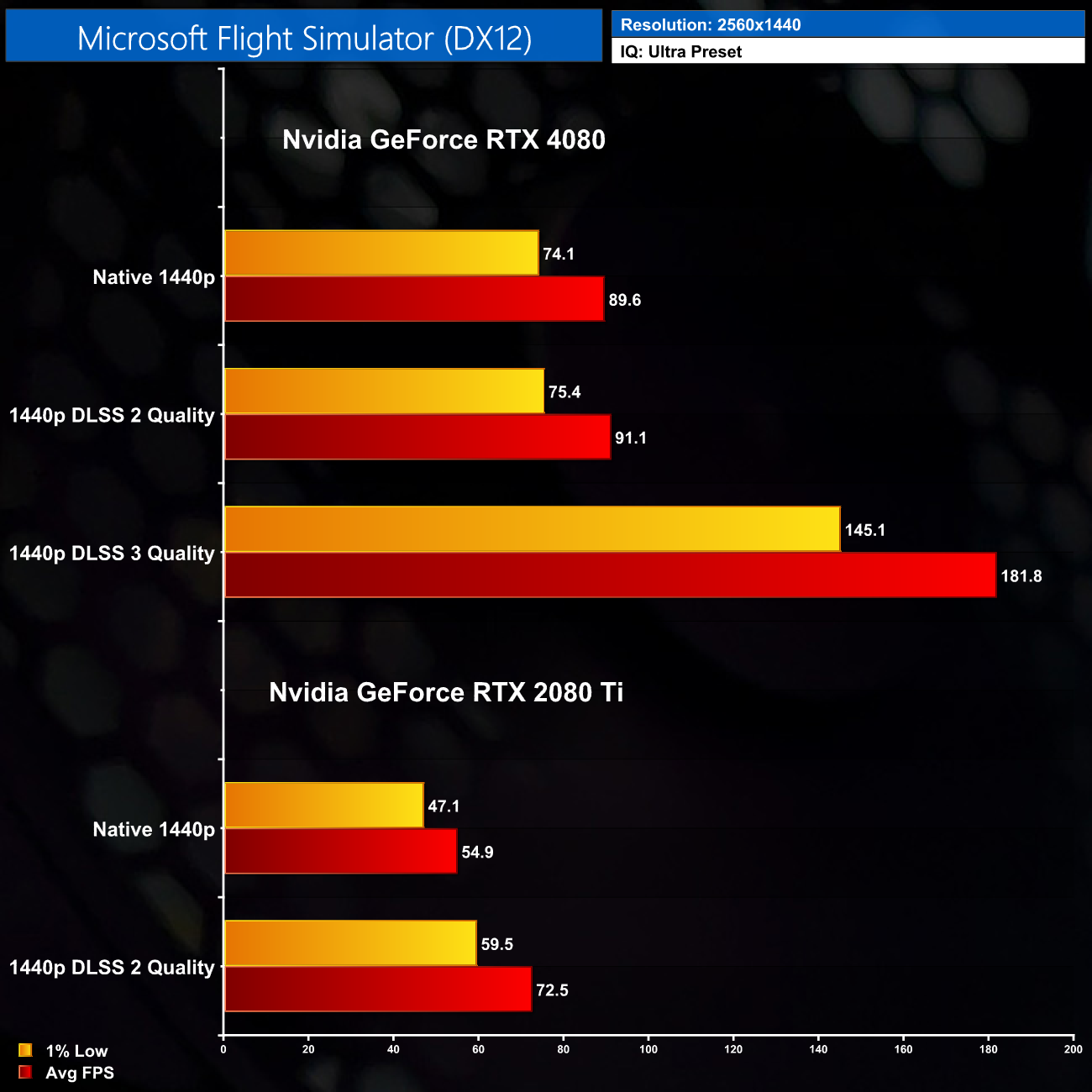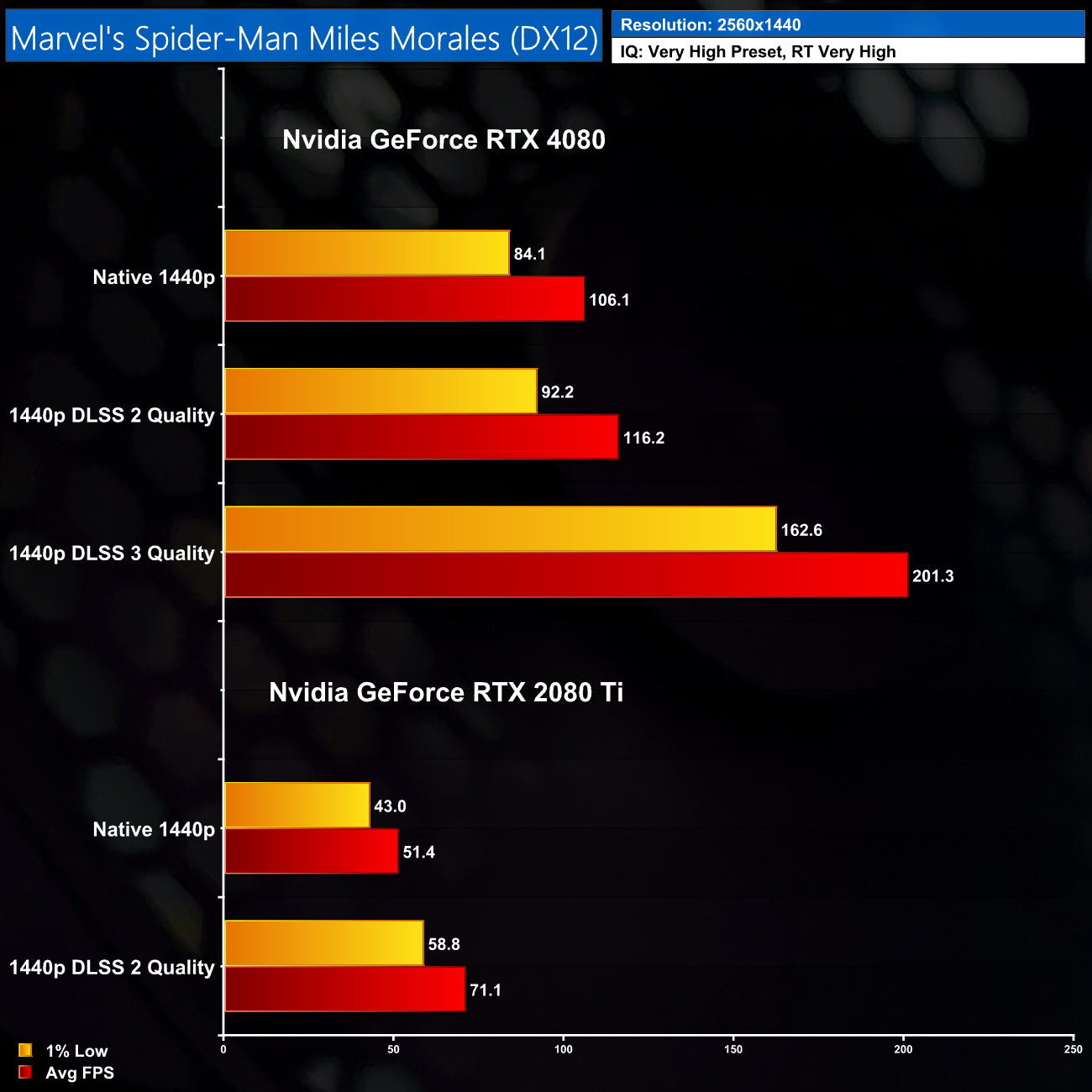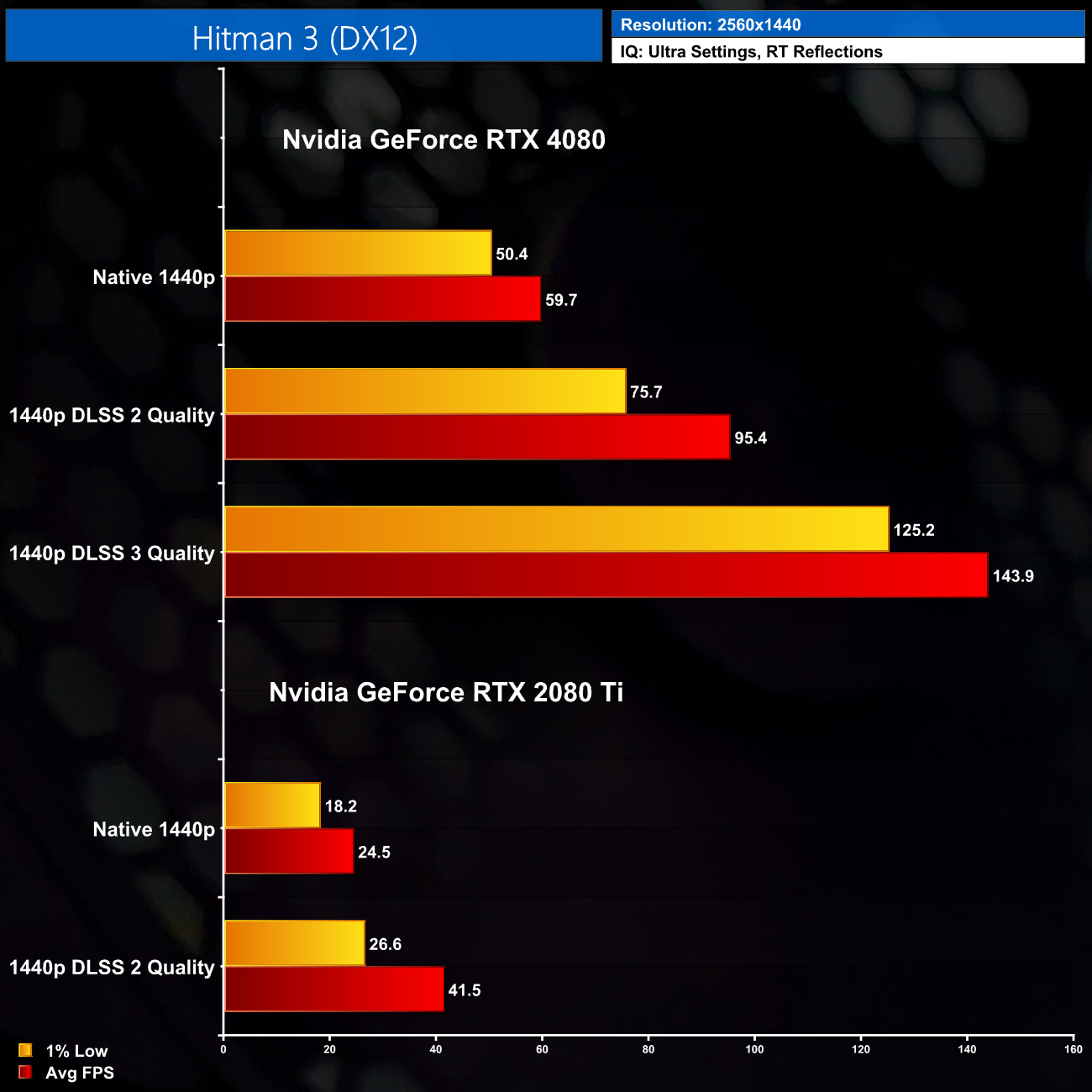 As mentioned, for the full analysis be sure to check out the video at the top of this page. It’s safe to say, however, that the RTX 4080 is significantly faster than the RTX 2080 Ti – that may sound obvious, but when comparing both GPUs using DLSS 2 Quality mode, the RTX 4080 came in on average 2.2 times faster at 4K.