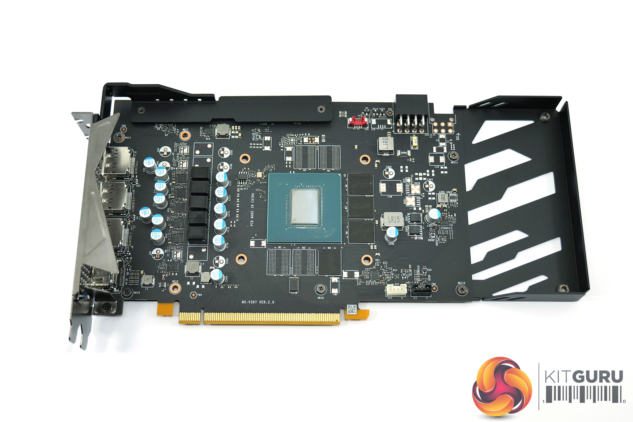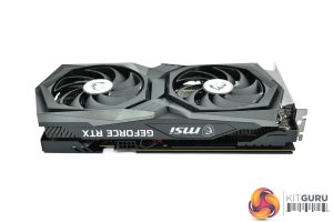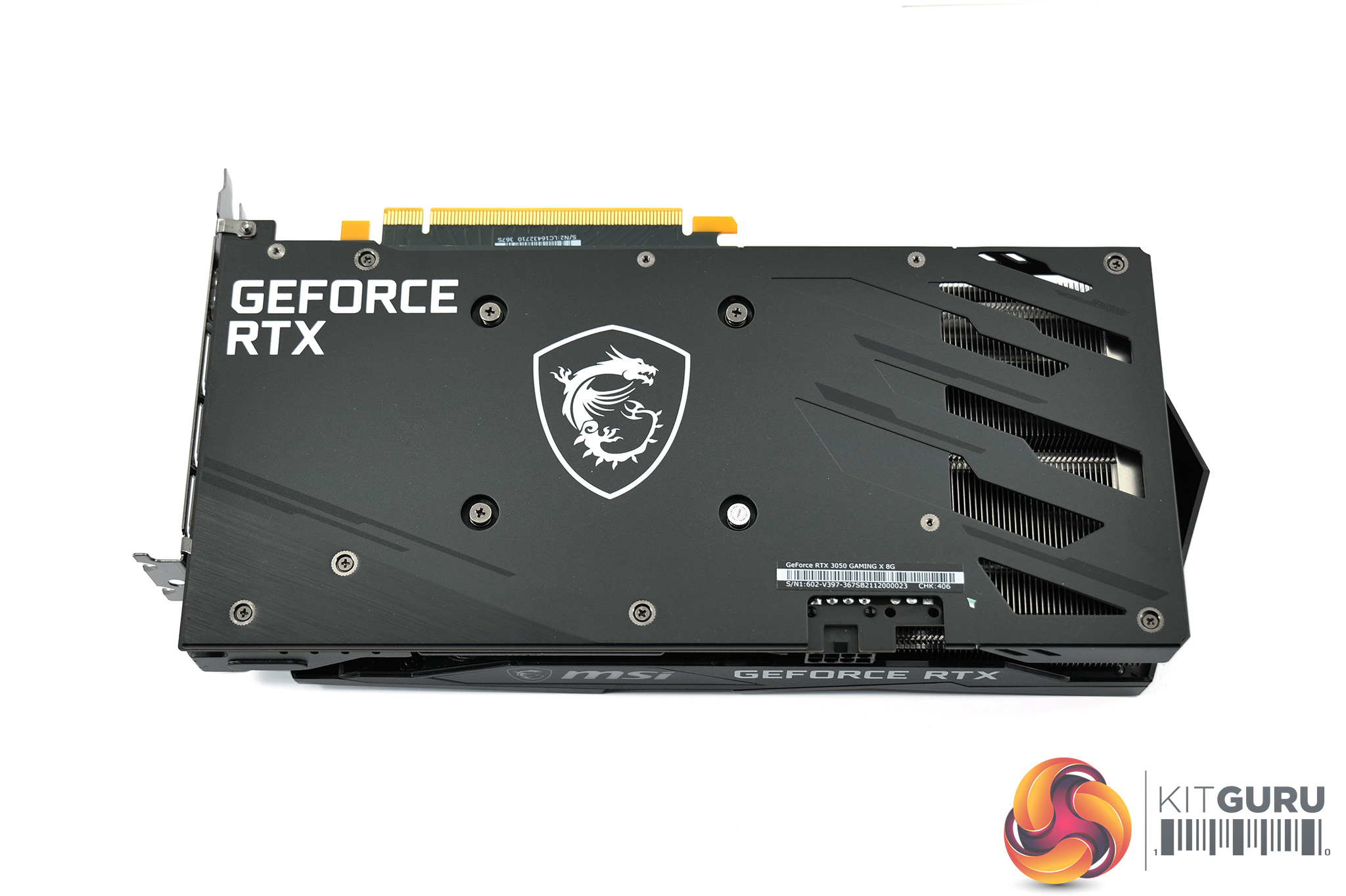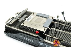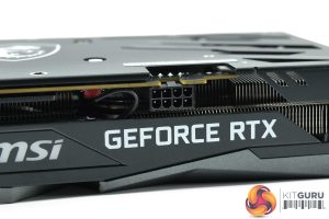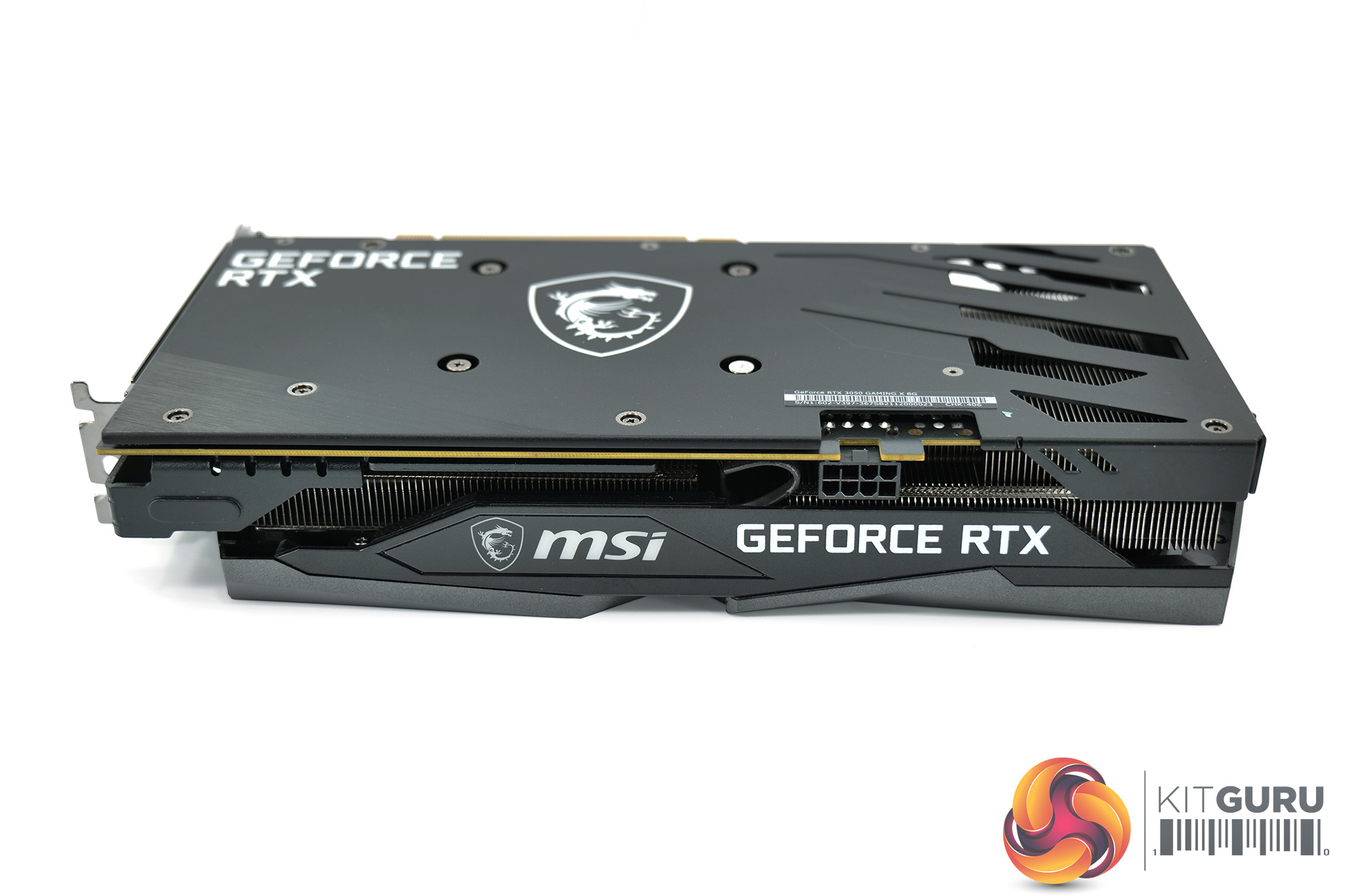 On the side of the shroud, we find the MSI logo, which acts as the only RGB zone on the card. A metal backplate is also present, with a well-sized MSI dragon logo taking pride of place in the centre of the backplate. A few cutouts are visible towards the end of the card, to allow some airflow to pass directly through the heatsink.