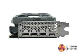 Power is supplied by a single 8-pin PCIe connector, while display outputs again consist of 3x DisplayPort 1.4 and 1x HDMI 2.1.