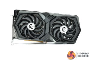 The overall design of the Gaming X will be immediately familiar to anyone who's already seen MSI's other current-gen Gaming-series cards, like this RTX 3070. The design language is consistent across models, with a black and dark-grey shroud that is made of plastic.