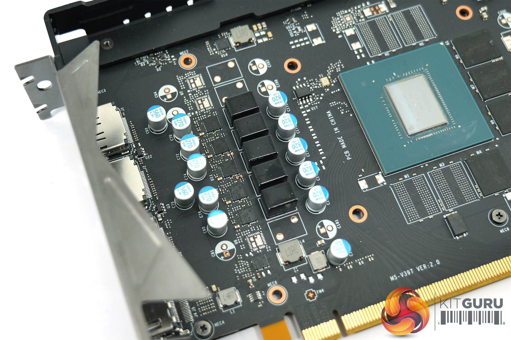 Two 100mm fans dominate the front of the card too, with these using MSI's Torx 4.0 design. This sees two fan blades connected to one another with an outer-ring, designed to focus airflow down and through the heatsink – not dissimilar to ASUS' design on its current-gen cards.