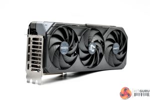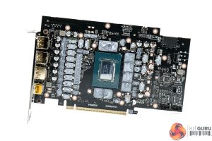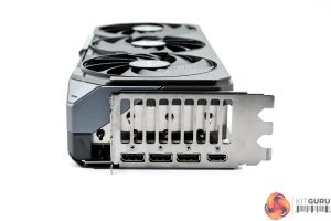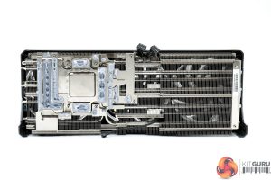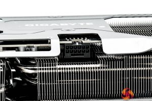 As for the backplate, this made of a grey metal and while it is full-length, there is a very sizeable ‘flow through' area to improve with heat dissipation. It's interesting that the backplate ‘wraps over' the side slightly, which Gigabyte claims improves overall structural rigidity – in any case, it looks pretty cool.