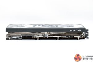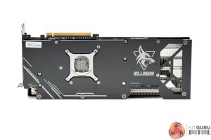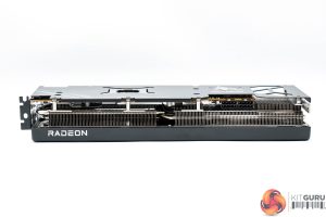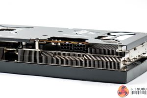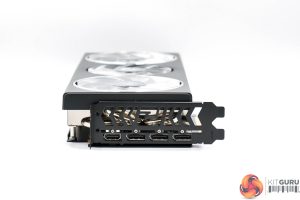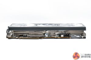 The front side of the card is left very open, allowing a good chunk of hot air to escape from the heatsink. As for the backplate, this is made of metal and spans the length of the card, but with four small cut-outs towards the end to allow air to pass through the heatsink. We can also note the dual-BIOS switch positioned next to the I/O bracket, giving users a choice of either the OC or Silent modes, and we test both later in the review.