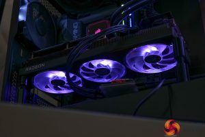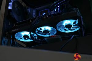 The three fans grab your attention, too, with their translucent fan blades, designed to amplify the LED lighting (as shown below). Interestingly, the central fan is smaller than the outer two at 90mm, while the others measure 100mm across. The central fan also spins in reverse, a now-common feature designed to reduce airflow turbulence.