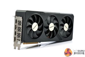 As for the card itself, the design will be instantly familiar if you've seen any of our other Gigabyte Gaming OC reviews this GPU generation. The shroud is almost entirely black, with just a couple of grey accents, while it features some circuit board-style traces and other design elements to add some visual interest.