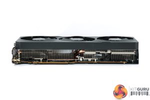 It's obviously sporting a triple-fan setup as well, part of Gigabyte's Windforce cooling solution. Each fan measures 90mm in diameter, while the central fan spins in reverse, a common feature designed to reduce airflow turbulence.