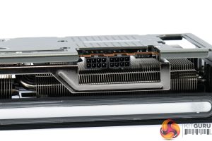 Above we can see the ARGB header which is positioned next to the power inputs. This lets you connect the graphics card to your motherboard if you want to synchronise the LED lighting that way, though do note you have to download the TriXX software and set the LED setting to ‘external source'. Another header is positioned at the end of the PCB, this one is a 4-pin PWM fan header allowing you to connect a case fan and have it directly controlled by the GPU's temperature.
