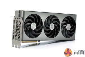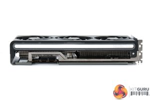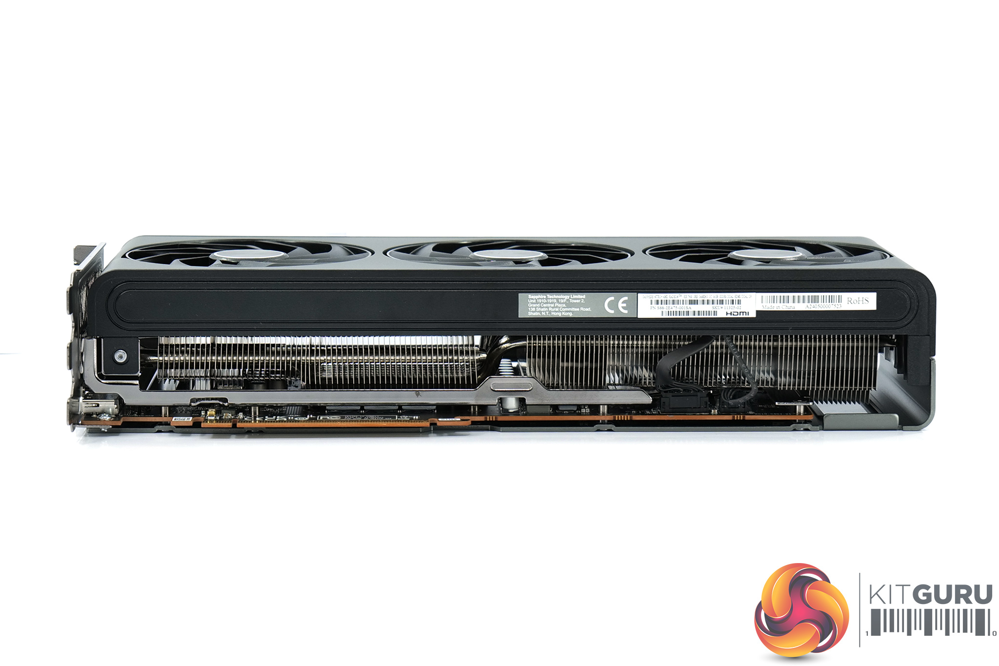 We get a good look at the triple fan setup, too. These utilise Sapphire's Angular Velocity Blade design, notable for their very sharp and angular appearance, while each fan measures approximately 100mm in diameter. These fans also feature Sapphire's Quick Connect technology, so they can be removed after unscrewing just one screw per fan.