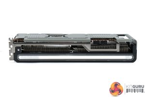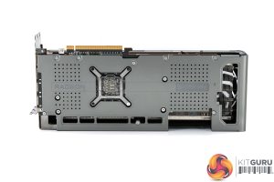 As for the backplate, this is made of metal and runs the length of the card but with a relatively large cut-out towards the end to allow air to pass through the heatsink. The Sapphire logo is another RGB zone on the card.